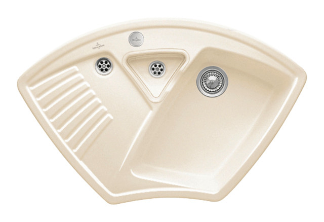 V&B Eckspüle Arena Eck mit Ablaufgarnitur, Excenterbetätigung, crema CeramicPlus