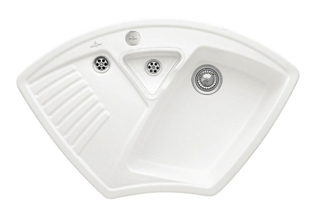 V&B Eckspüle Arena Eck mit Ablaufgarnitur, Excenterbetätigung, stone white CeramicPlus