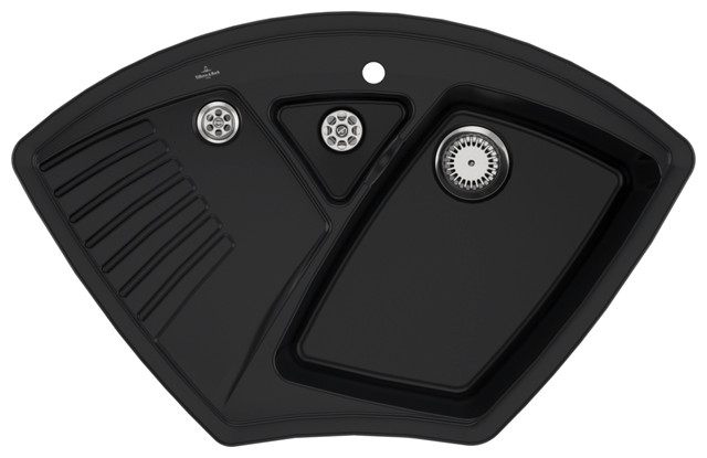V&B Eckspüle Arena Eck mit Ablaufgarnitur, Handbetätigung, ebony CeramicPlus
