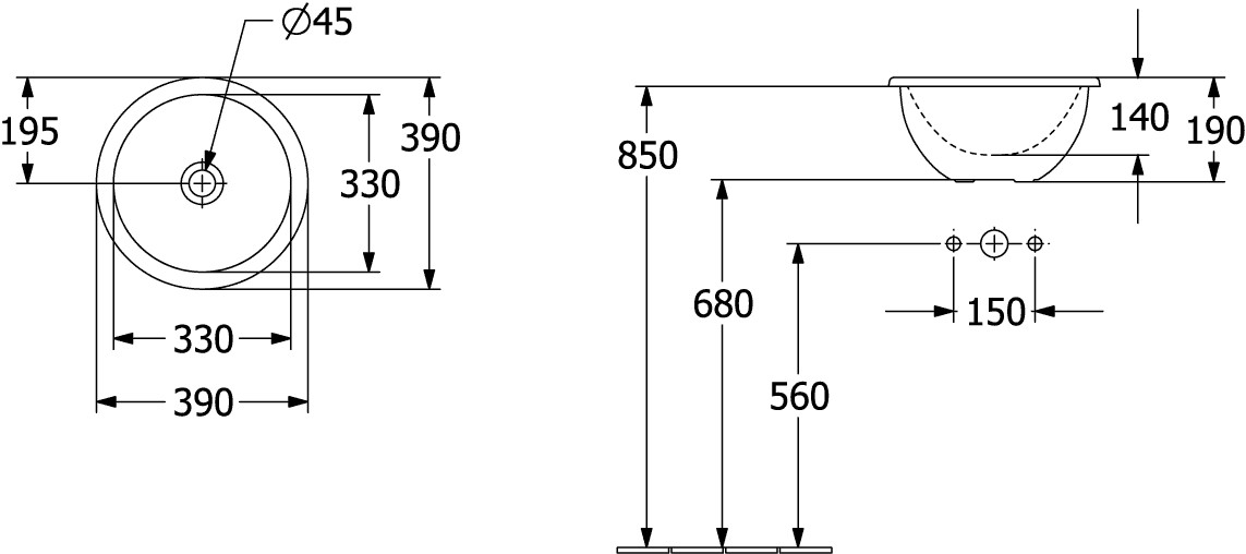 V&B Einbauwaschbecken LOOP & FRIENDS rund, ohne Hahnlochbank, ohne Überlauf, Ø 39 cm, weiß VB4A590101