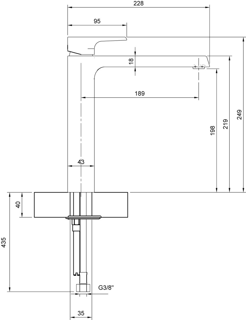 | Aufbauhöhe Unterkante Hahnauslass | 198 mm |