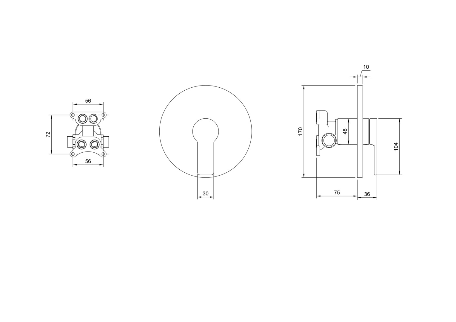 170 x 170 x 36 mm, Wandmontage, Kippen, Chrom, Material aus Messing, Keramikkartusche, Anschlusstyp 1/2''