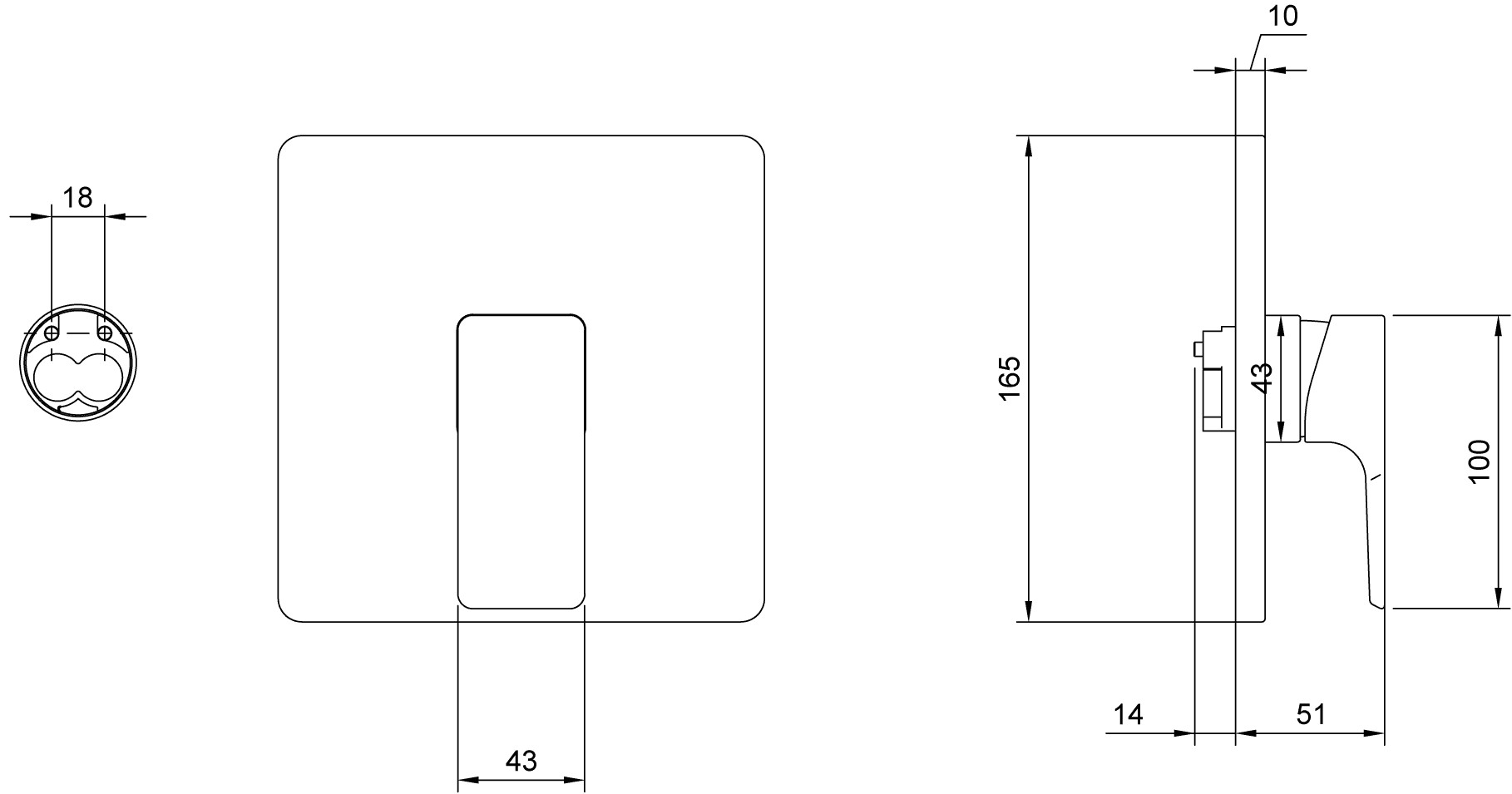 281 x 98 x 43 mm, Eckig, Kippen, mit Rückflussschutz, Anschlusstyp 1/2'', Handbrauseschlauch-Anschluss 1/2''