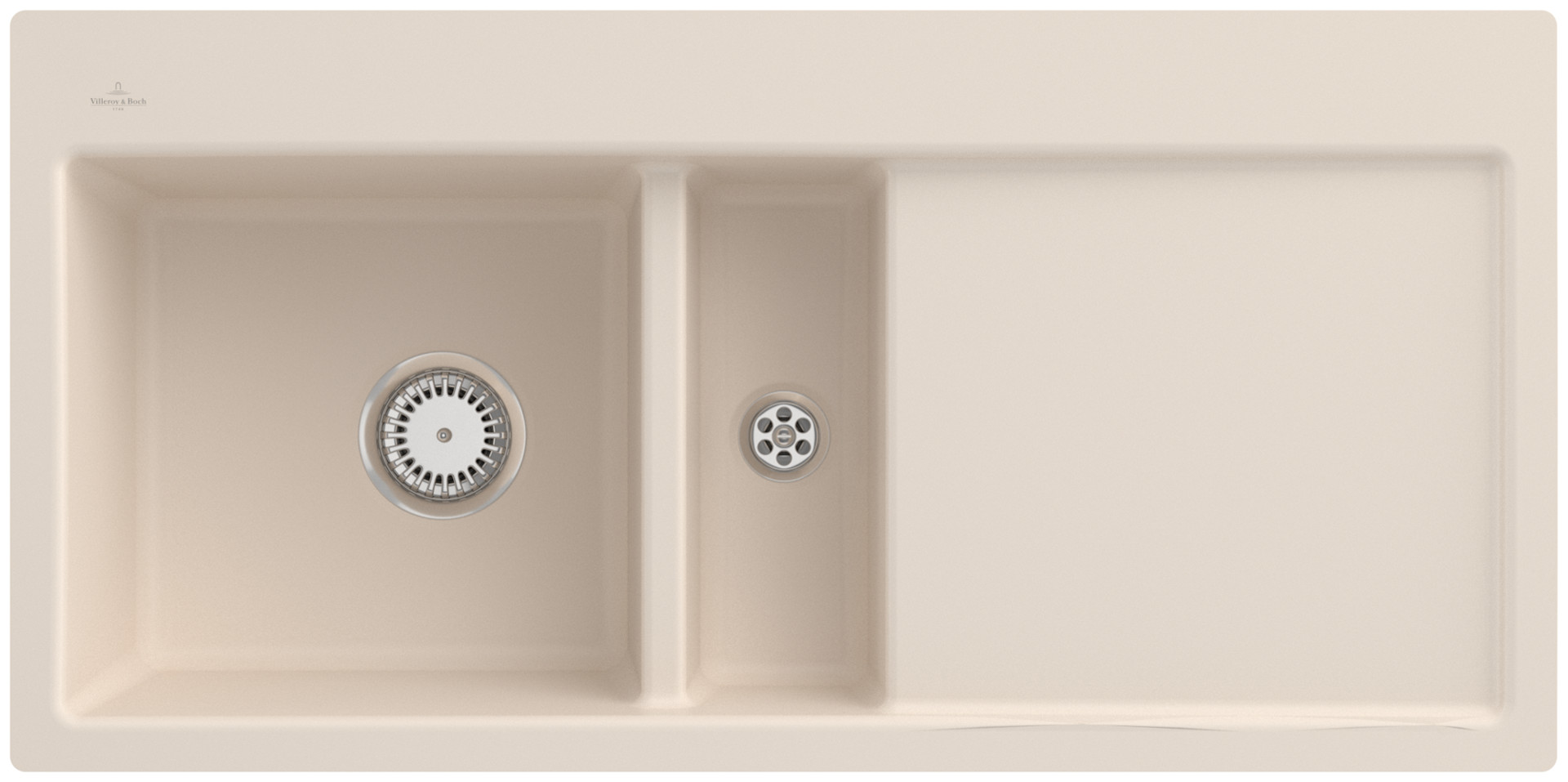 V&B Flächenbündige Spüle Subway 60 Flat rechts, mit Ablaufgarnitur, Handbetätigung, crema VB67121FKR