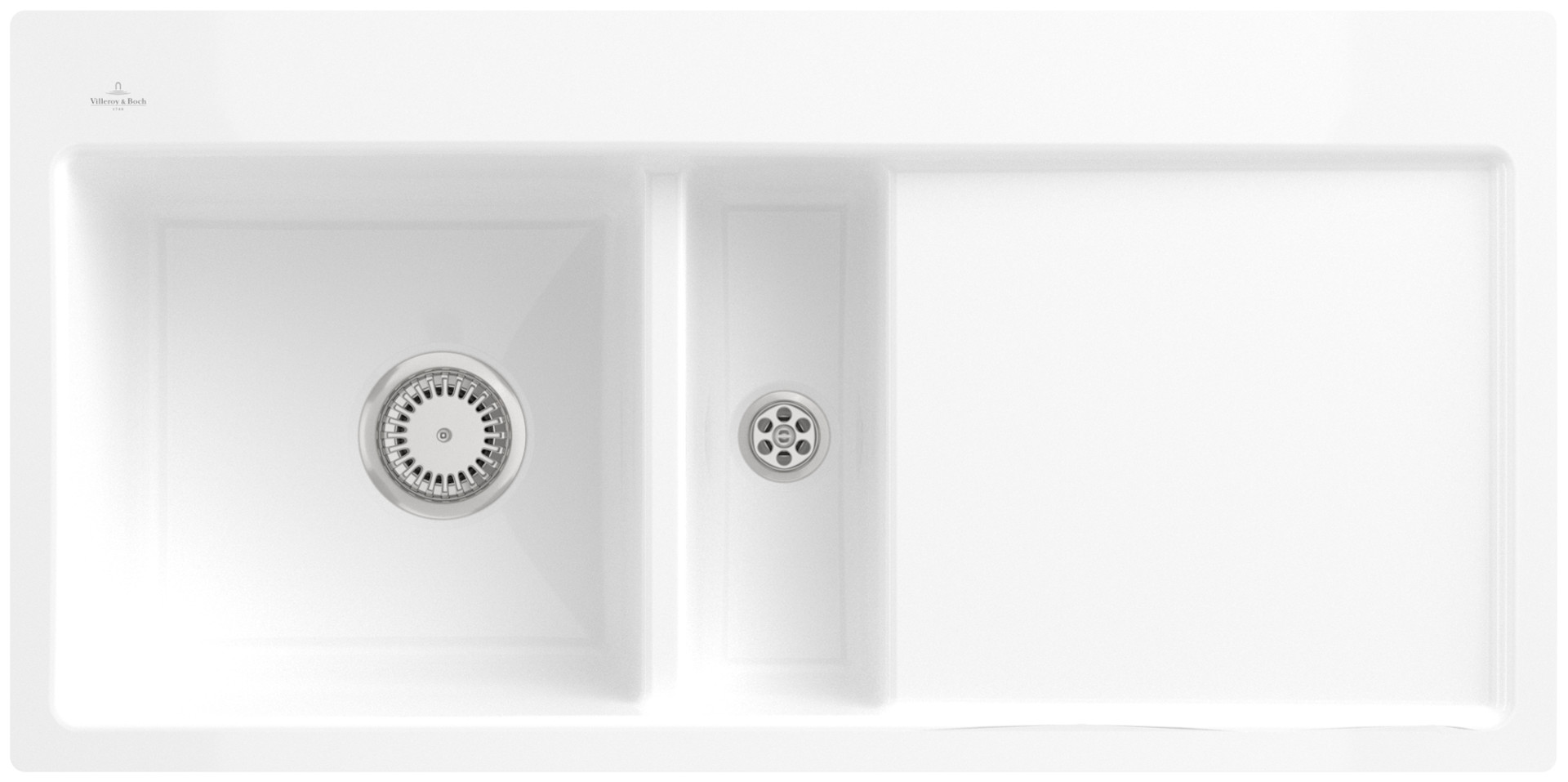 V&B Flächenbündige Spüle Subway 60 Flat links, mit Ablaufgarnitur, Handbetätigung, weiß