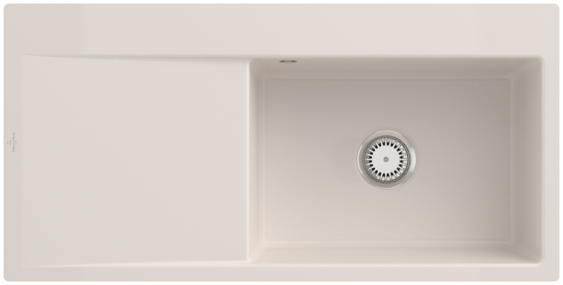 V&B Flächenbündige Spüle Subway Style 60 Flat links, mit Ablaufgarnitur, Handbetätigung, stone white CeramicPlus VB33621FRW
