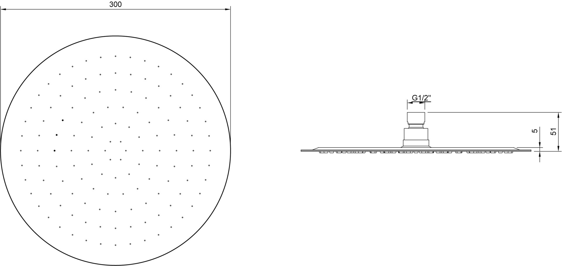 300 x 51 x 300 mm, Antikalk-System, Material aus Edelstahl, Anschlusstyp 1/2'', maximale Durchflussmenge bei 3 bar 19,5 l/min