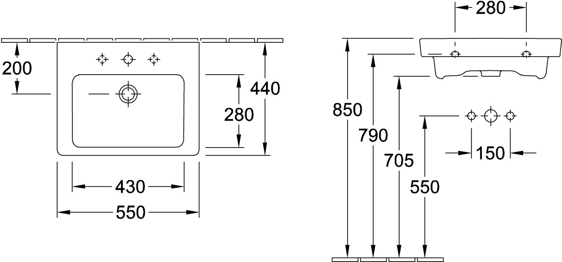 | Anzahl der Hahnlöcher je Waschplatz | 1 |