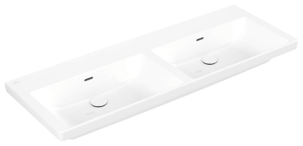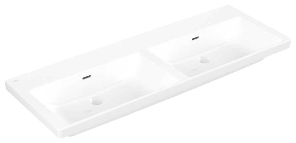 V&B Schrank-Doppelwaschtisch Subway 3.0 130x47,5cm, eckig, mit je 1 Hahnloch/ohne Überlauf, weiß C-plus VB4A71D1R1