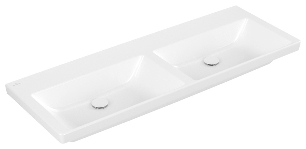 V&B Schrank-Doppelwaschtisch Subway 3.0 130x47,5cm, eckig, ohne Hahnloch/ohne Überlauf, weiß C-plus