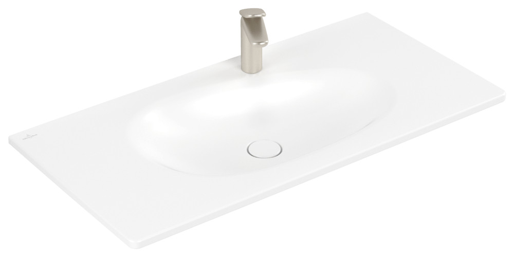 V&B Schrankwaschtisch Antao 100x50cm, eckig, 1 Hahnloch, ohne Überlauf, weiß C-plus VB4A76A2R1