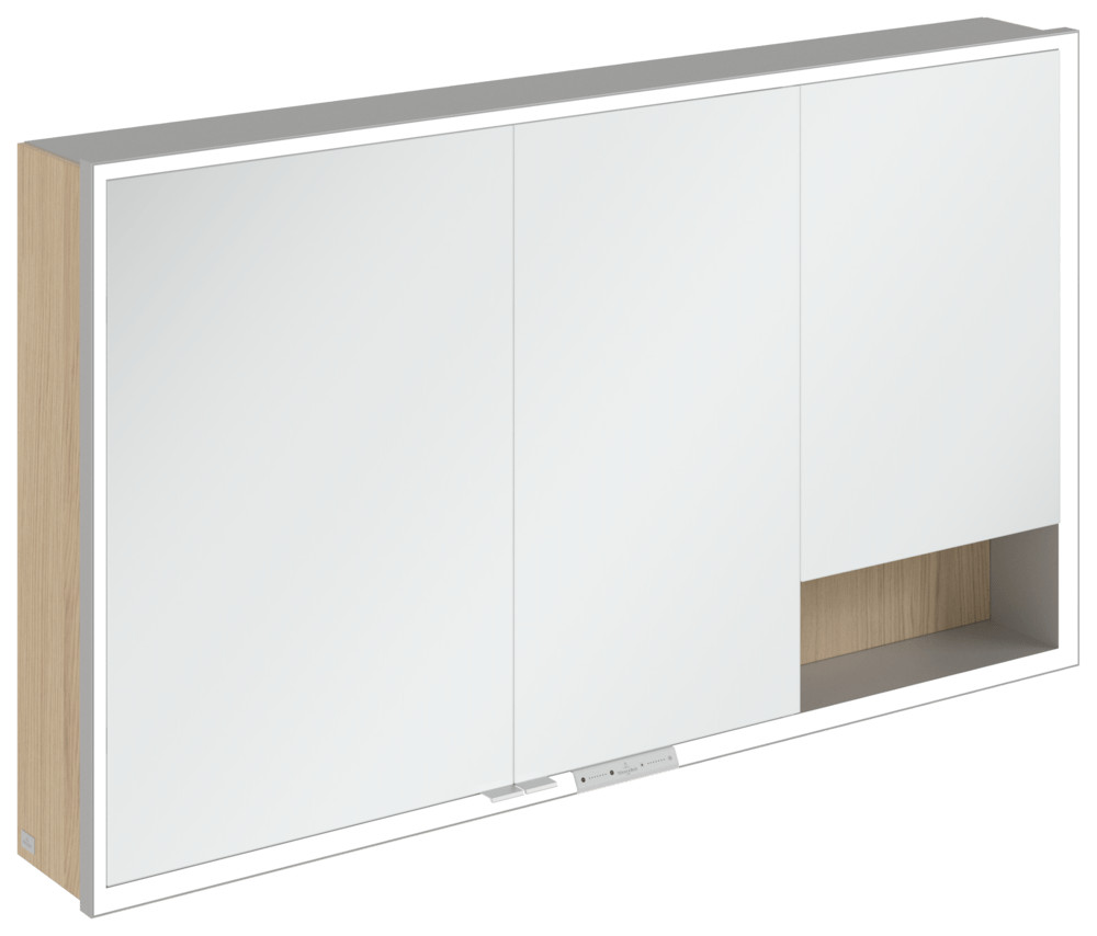 V&B Spiegelschrank My View + 130 x 75 x 16,8 cm, Nordic Oak, LED-Beleuchtung, Aluminium silber matt eloxiert