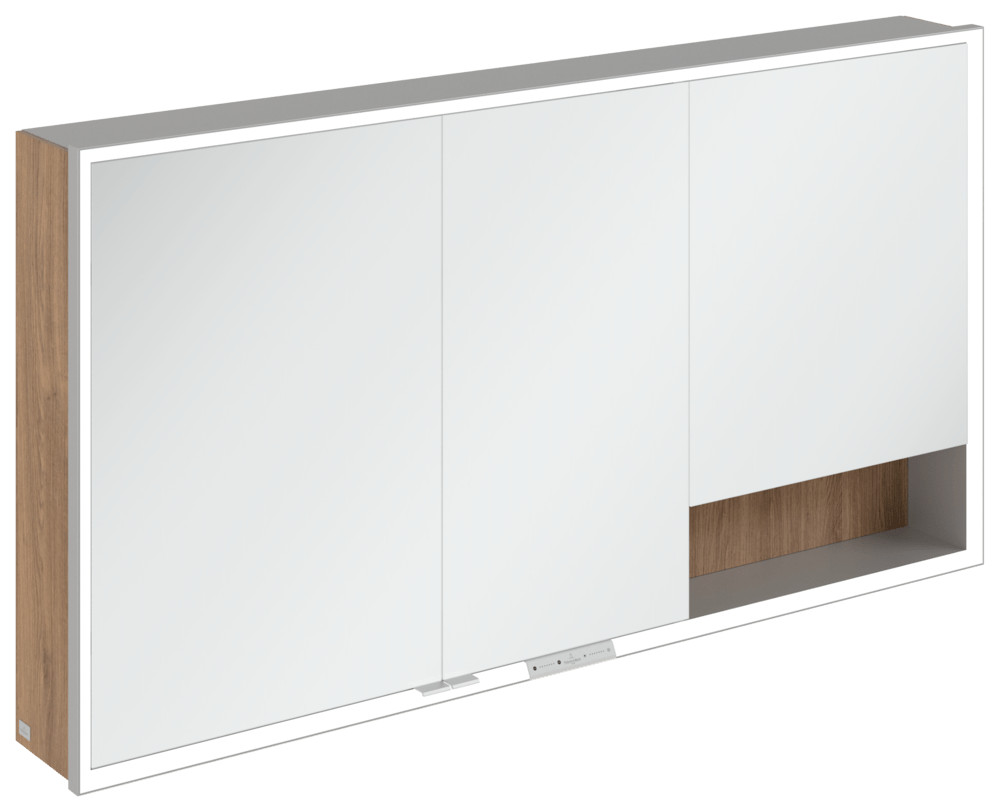 V&B Spiegelschrank My View + 160 x 75 x 16,8 cm, Kansas Oak, LED-Beleuchtung, Aluminium silber matt eloxiert VBA48116RH