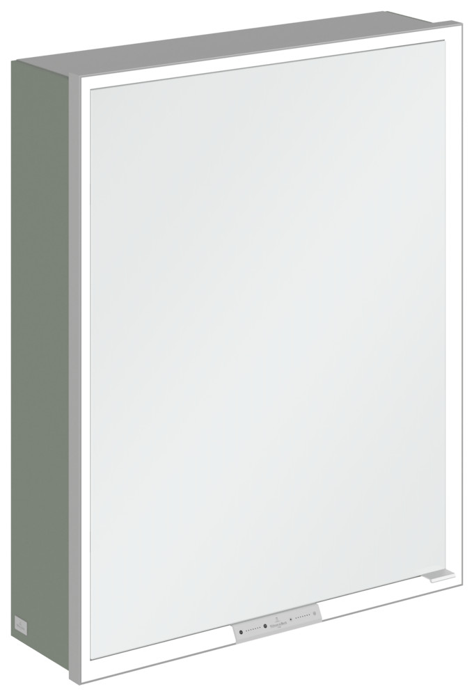 V&B Spiegelschrank My View + 60 x 75 x 16,8 cm, Scharnier Anschlag links, Soft Green, LED-Beleuchtung, Aluminium silber matt eloxiert