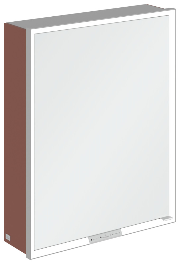V&B Spiegelschrank My View + 60 x 75 x 16,8 cm, Scharnier Anschlag links, Wine Red, LED-Beleuchtung, Aluminium silber matt eloxiert
