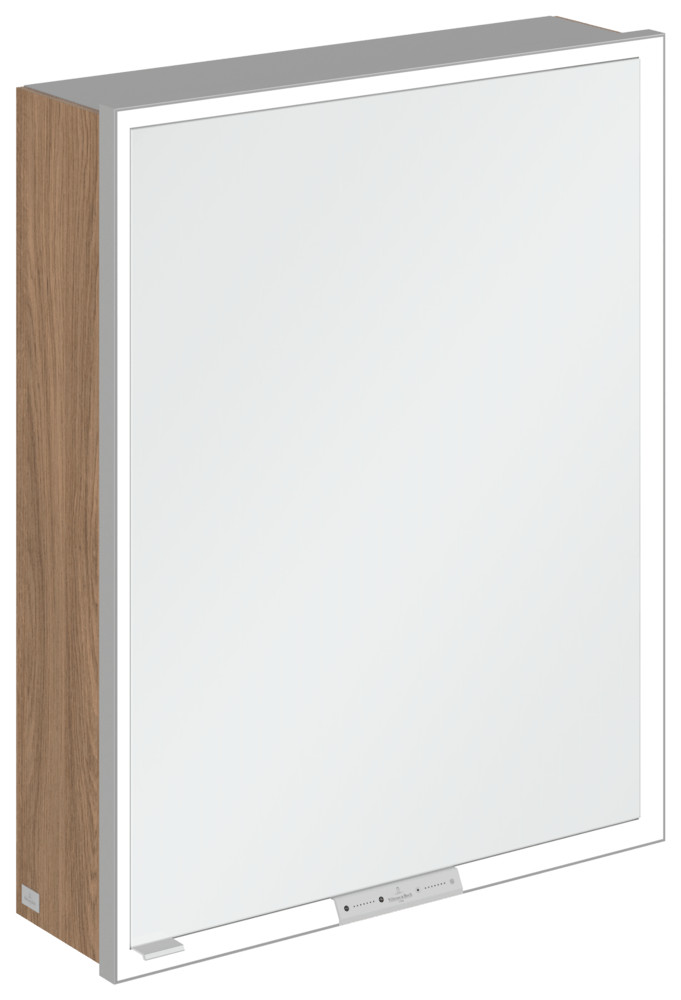 V&B Spiegelschrank My View + 60 x 75 x 16,8 cm, Scharnier Anschlag rechts, Kansas Oak, LED-Beleuchtung, Aluminium silber matt eloxiert