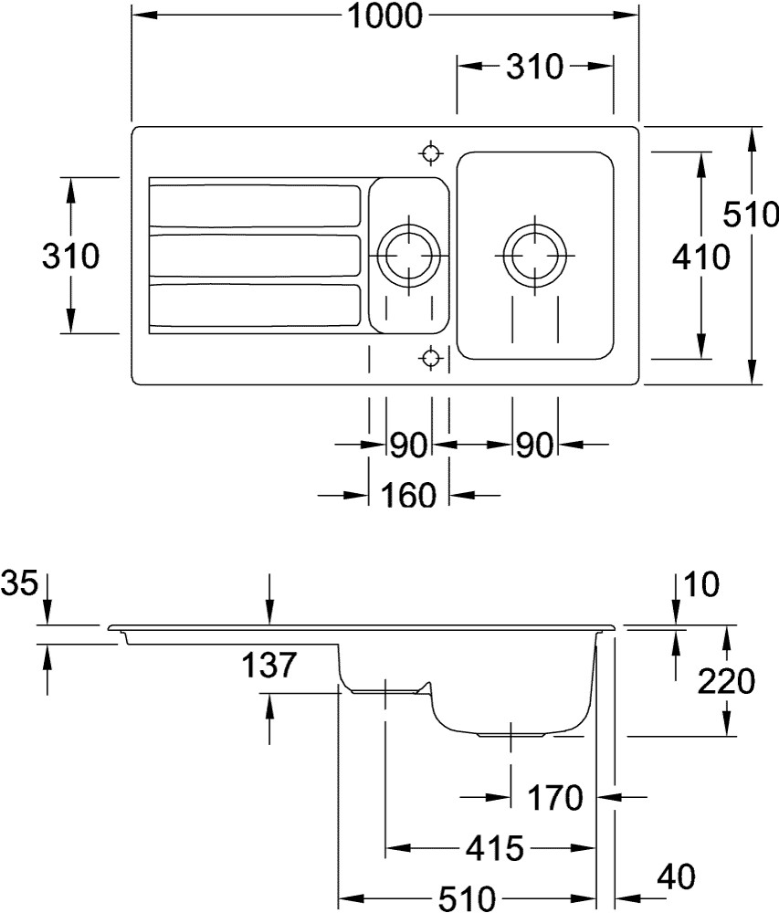 reversibel, für den aufliegenden Einbau, minimale Unterschrankbreite 60 cm, 2 Becken verschließbar, Dampfgarschale GN 1/3 einsetzbar