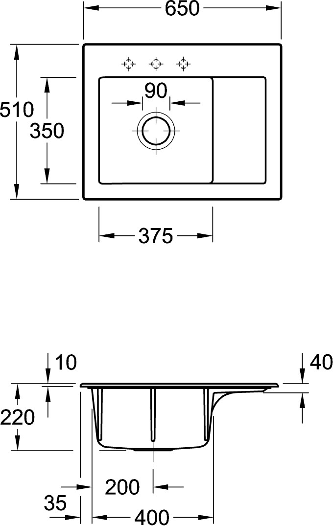 für den aufliegenden Einbau, minimale Unterschrankbreite 45 cm