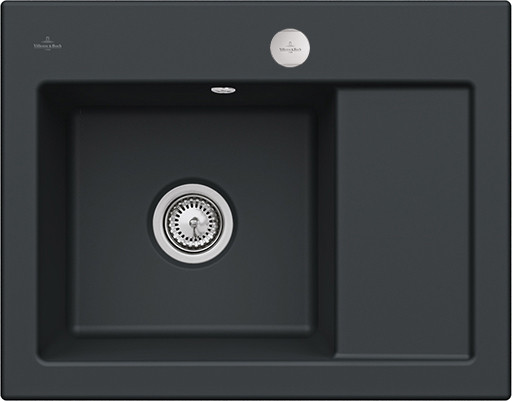 V&B Spüle Subway 45 Compact links, mit Ablaufgarnitur, Excenterbetätigung, pure black