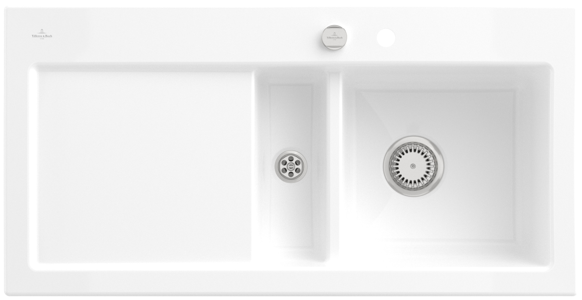 V&B Spüle Subway 60 rechts, mit Ablaufgarnitur, Excenterbetätigung, snow white CeramicPlus