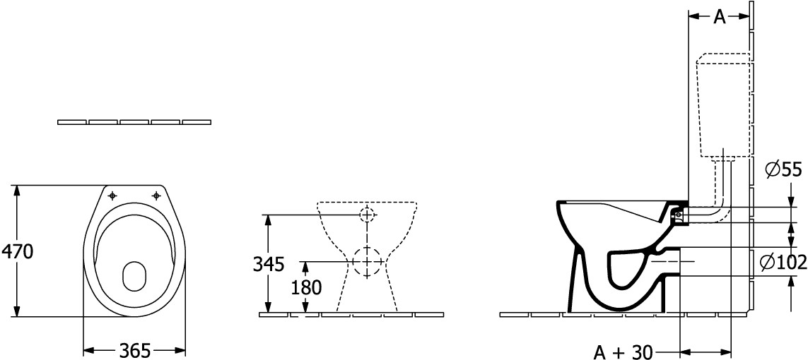 Flachspül-WC spülrandlos, DirectFlush, Sanitärkeramik, Maße 365 x 470 mm, Oval, bodenstehend, nicht für den Einbau mit Druckspülern geeignet, Spülwasserbedarf 3/6 l, EN 997, Spülwasserbedarf 3/6 l