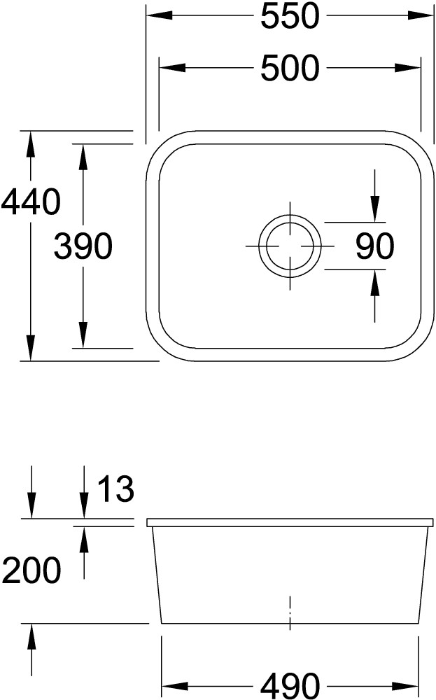 Einbau unter Natur-/Kunststeinplatten, minimale Unterschrankbreite 60 cm