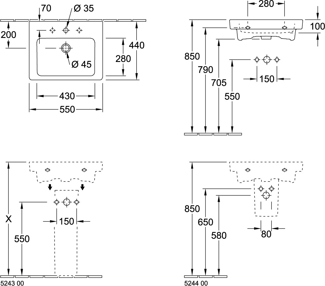 Breite 550 mm