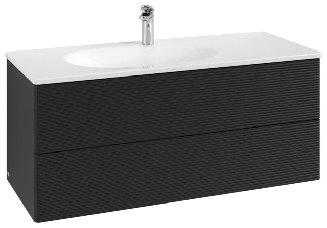 V&B Waschtisch-Unterschrank Auszugsbeleuchtung Antao 118,8x50,4x49,3cm, mit Frontstruktur, black matt lacquer