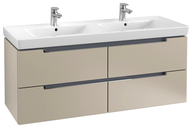 V&B Waschtisch-Unterschrank Subway 2.0 128,7x52x44,9cm, Griff silber matt, glossy grey VBA69900FP