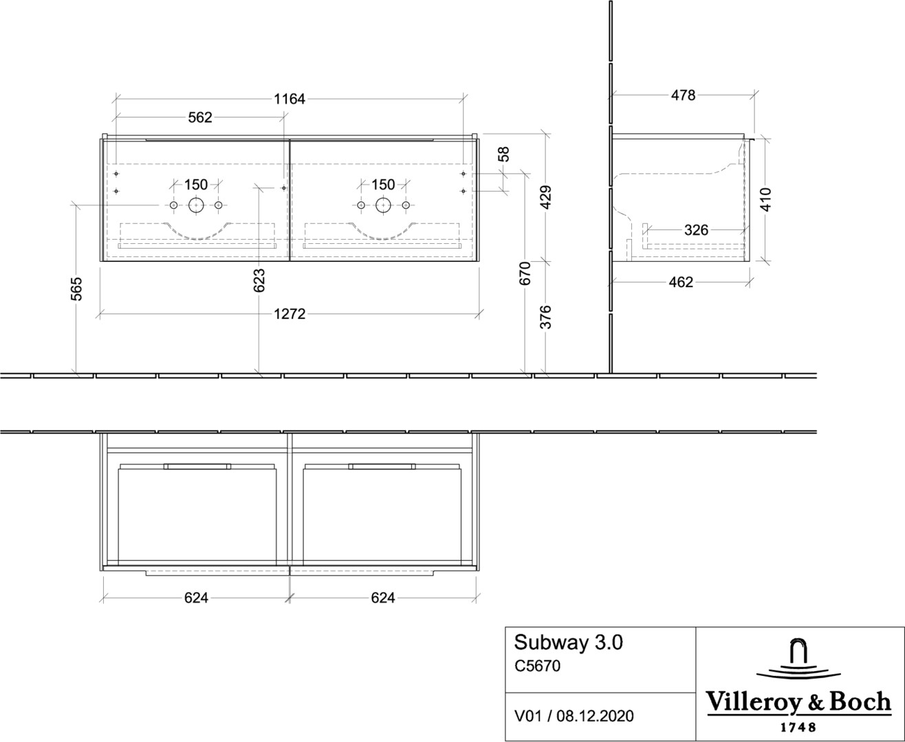 V&B Waschtisch-Unterschrank Subway 3.0 127,2x42,9x47,8cm, ohne LED/Griff Aluminium glänzend, brilliant white VBC56700VE