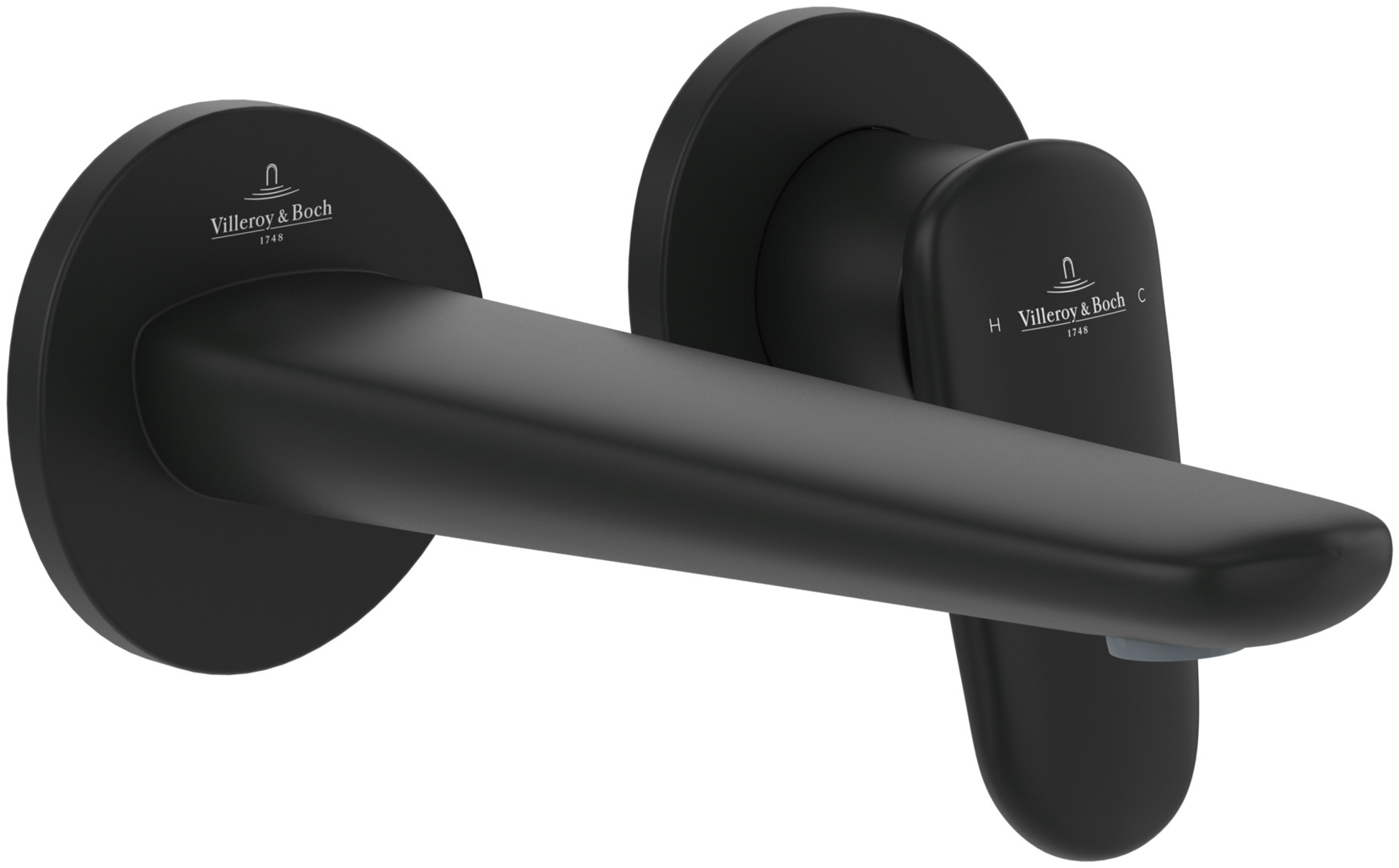V&B Zweiloch-Einhebelwaschtischmischer Antao fester Auslauf, ohne Ablaufgarnitur, Wandmontage, matt black