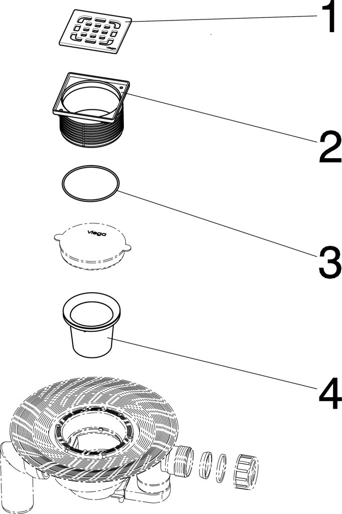 Viega Badablauf Advantix 4911.6 DN 50, Kunststoff grau, mit Aufsatz, Ablauf 90° mit Kugelgelenk
