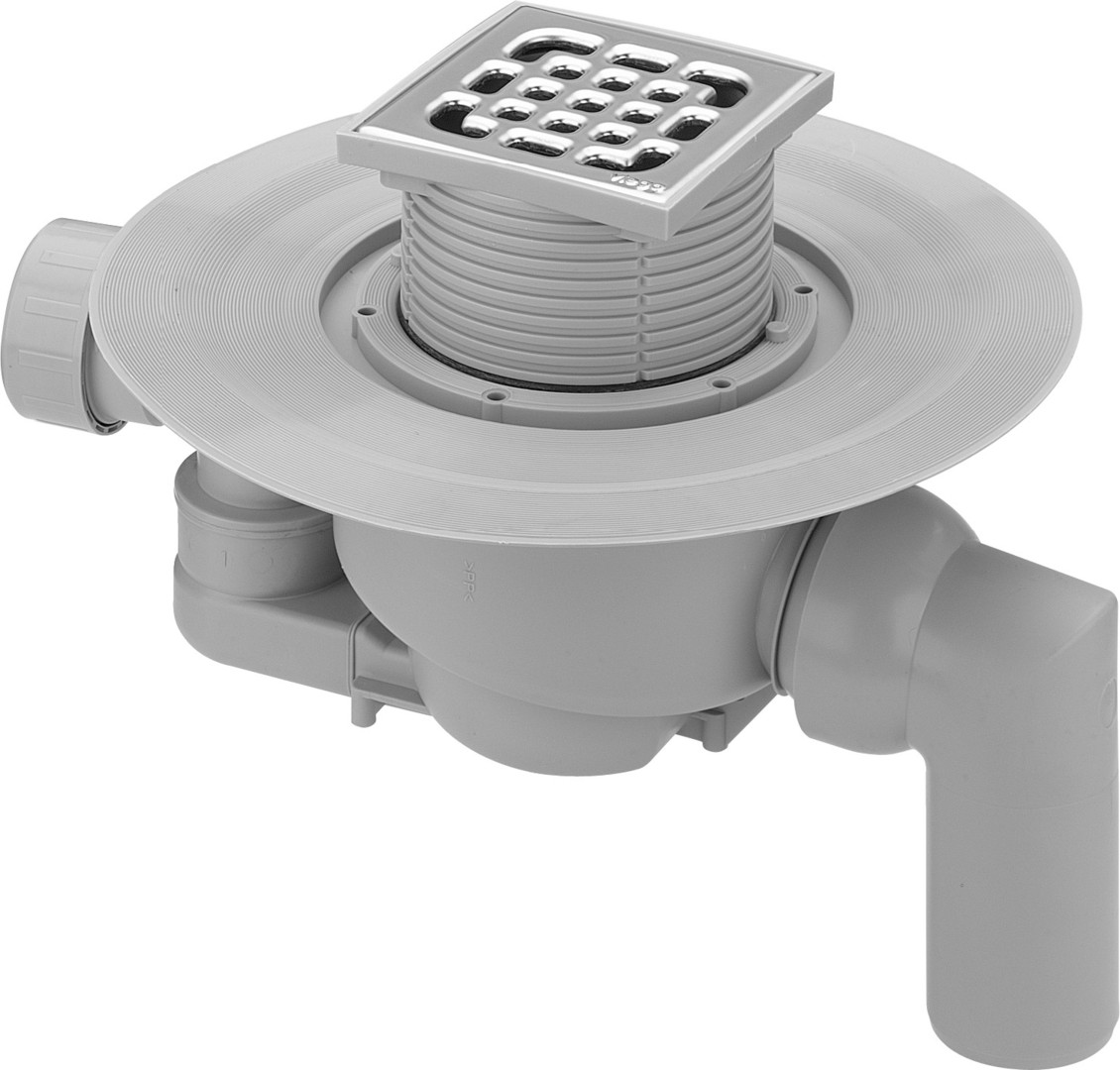 Systemmaß 100, bestehend aus Aufsatz 100 x 100 mm dreh- und höhenverstellbar, Rahmen Kunststoff, Rost Edelstahl 1.4301, Stopfen, Abdichtungsflansch, Geruchverschluss herausnehmbar, Zulauf DN 40 drehbar, Belastungsklasse K=300 kg, Ablaufleistung Anstauhöhe 10 mm 0,66 l/s, Ablaufleistung Anstauhöhe 20 mm 1,1 l/s, Ablaufleistung Zulauf 1,2 l/s, güteüberwacht nach DIN EN 1253