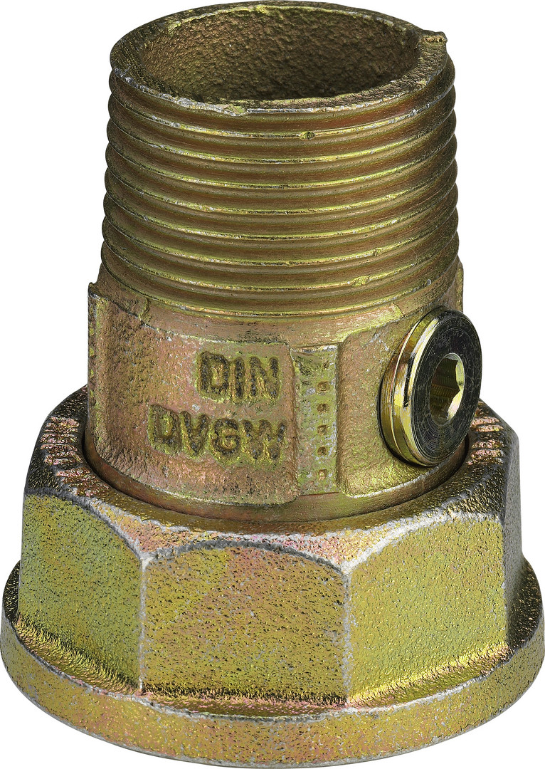 für Zweistutzengaszähler, Eingang R-Gewinde, Ausgang G-Gewinde, Prüföffnung < 1 mm, Prüfschraube G 1/8, Umgebungstemperatur max. 70 °C, Betriebsdruck max. 0,5 MPa (MOP 5), höher thermisch belastbar 650 °C/30 min GT1, mit DIN-DVGW-G-Prüfzeichen
