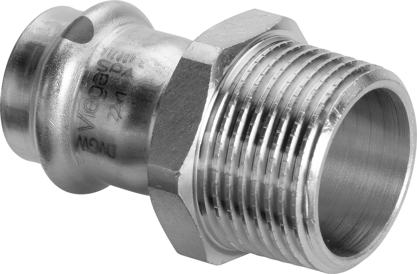 Einzelverpackung, Stahl nichtrostend, Pressanschluss, R-Gewinde, Dichtelement, EPDM, Mehrkant