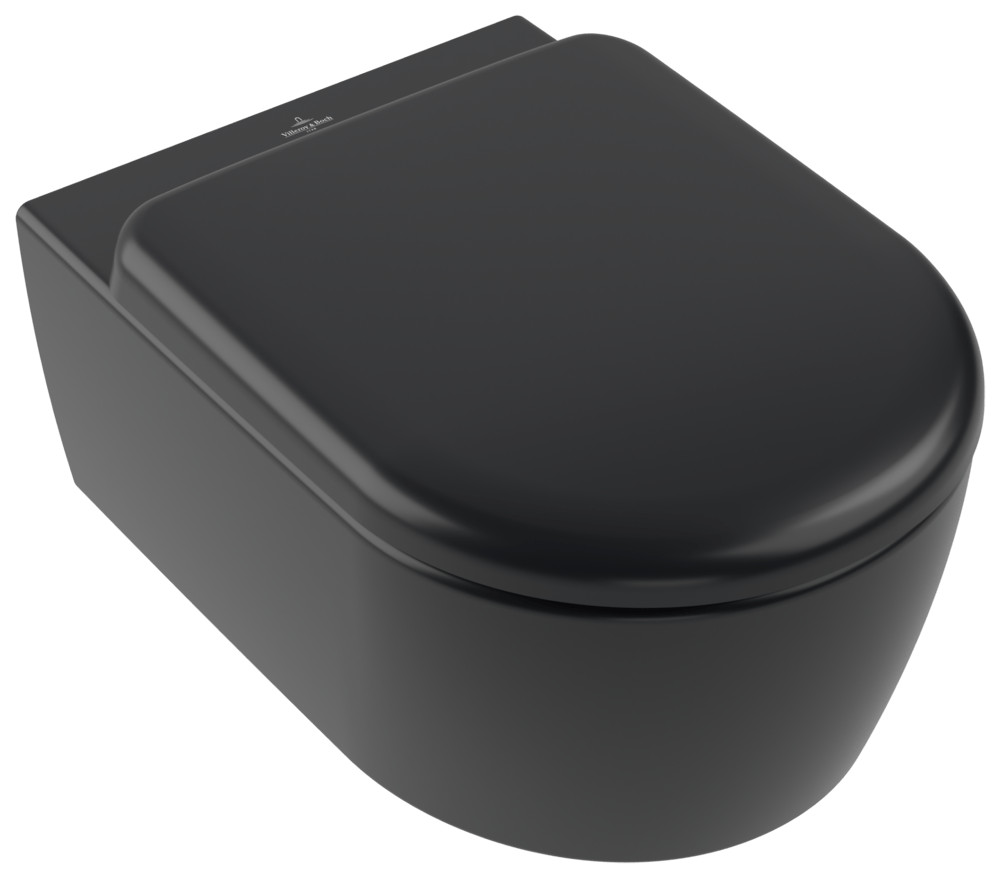 Villeroy & Boch Combi-Pack Skyla 5656CL, 370 x 530 x 315 mm, Oval, wandhängend, Abgang waagerecht, mit TwistFlush, Pure Black CeramicPlus