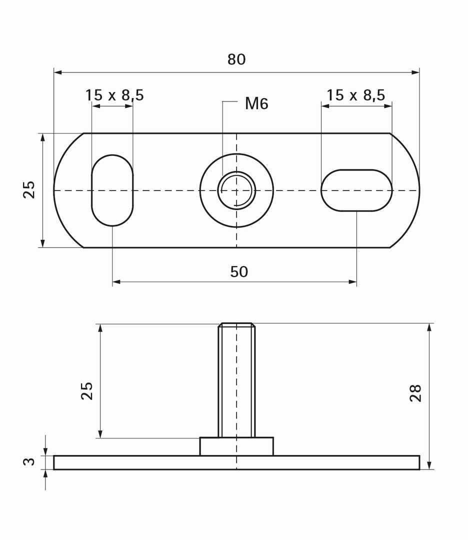 Walraven Grundplatte 672 AG M 8 x 28 x 25 mm, Stahl, elektrolytisch verzinkt BY6723008