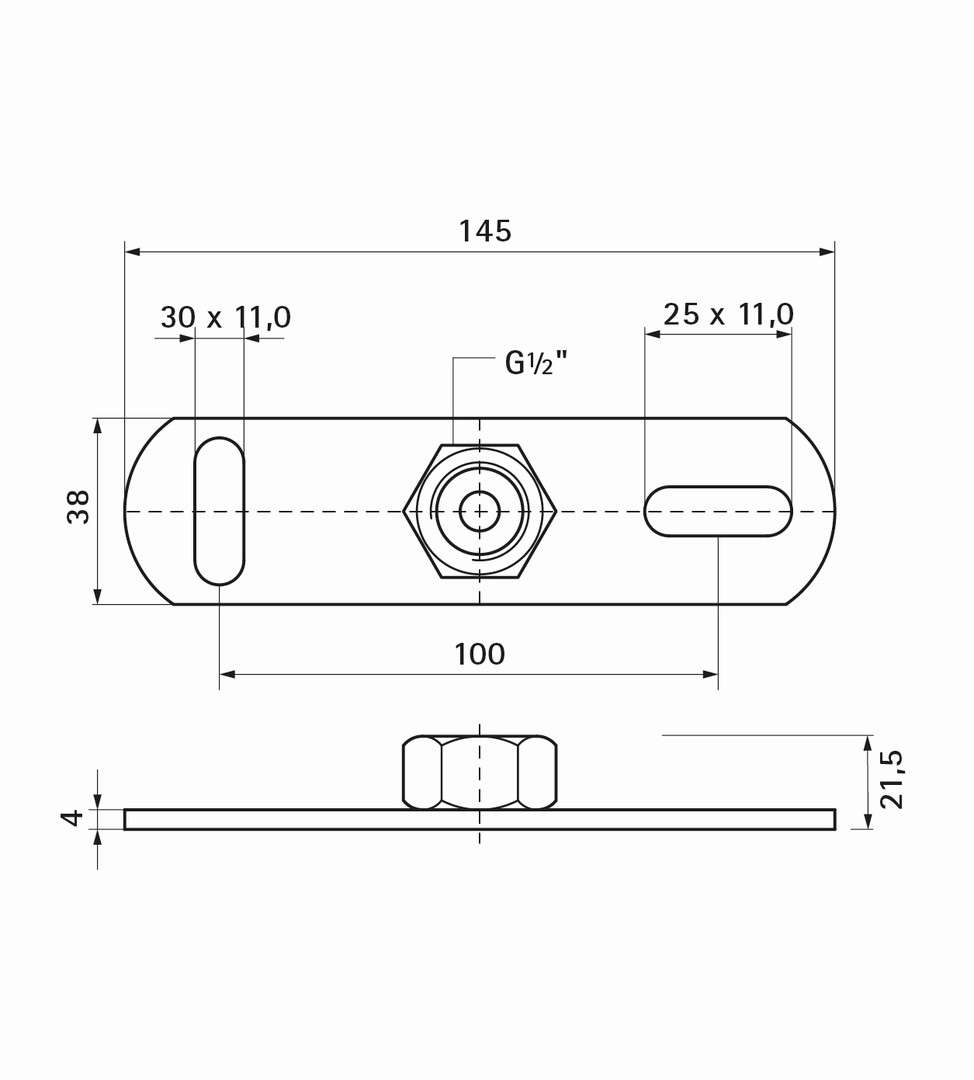 Walraven Grundplatte BUP1000 671 G 1/2, 145 mm, Stahl, elektrolytisch verzinkt