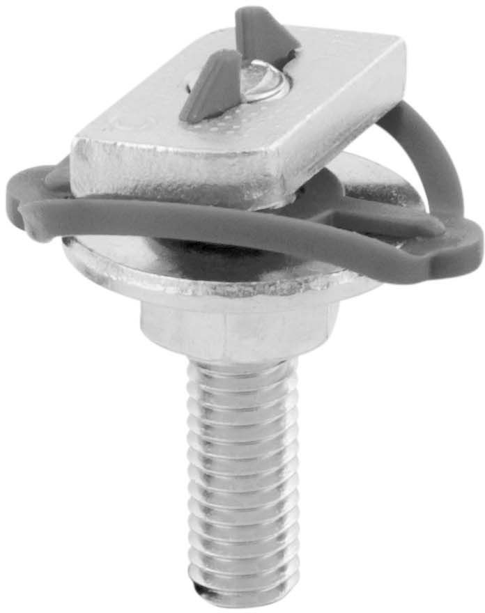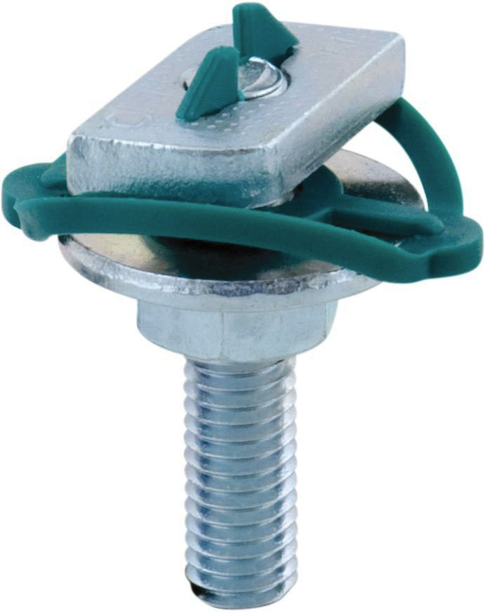 Befestigung an Walraven RapidRail Schiene, komplett vormontierte Schiebemutter mit Gewindestift, Unterlegscheibe und BIS RapidRail-Federring durch vormontierte Klemmfeder leicht einsetzbar und bis zur Endfixierung flexibel umpositionierbar geeignet für Montageschiene 27x18, 30x15, 30x20, 30x30, 30x45, 38x40 Material Metallteile aus Stahl 1.0332, Klemmfeder aus POM (Polyoxymethylen), grün, elektrolytisch verzinkt