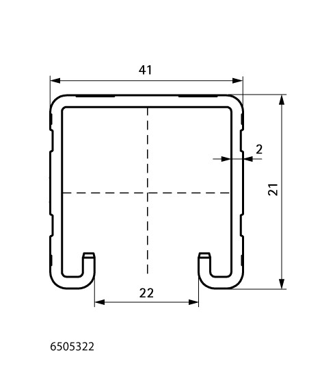 universelles Schienensystem, gleichmäßiges Lochbild, der Abstand zwischen Schienenende und erster Lochung ist immer gleich, mit seitlich eingestanzter cm-Skala, nach innen gebogene Flanken mit Verzahnung für extra Halt, Art.Nr. 6505x85 (41 x 82), erfüllt die Brandschutzanforderungen der MLAR/LAR/RbALei ab Strut 41 x 41 x 2,5 mm