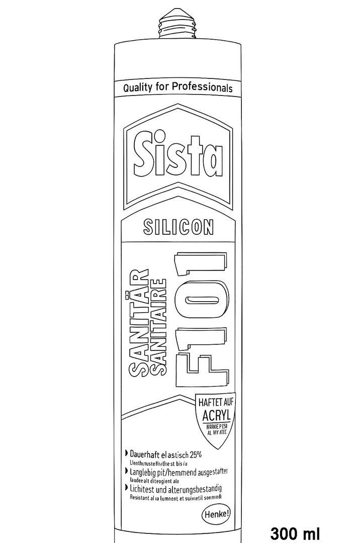 für Fugen im Sanitär- und Nassbereich nach IVD-Merkblatt Nr. 3, besonders für Anschlussfugen an Fliesen, in Badewannen, in Duschen und an Duschwannen, Waschbecken, Spülen, Küchenmöbeln etc., sauervernetzend, exzellente Haftungseigenschaften, u. a. Acrylwannen-Haftung, pilzhemmend, abriebfest, dauerelastisch und wasserdicht, lichtecht und alterungsbeständig, Glanzgrad: glänzend, Bewegungsvermögen ca. 25 %, Hautbildungszeit ca. 15-20 Minuten bei 23 °C und 50 % rel. Luftfeuchtigkeit, Verarbeitungstemperatur +5 °C bis +40 °C, Temperaturbeständigkeit -40 °C bis +150 °C, Lagerfähigkeit: bei kühler (5-25 °C) und trockener Lagerung ist das Produkt im ungeöffneten Originalgebinde bis zu 12 Monate verarbeitbar
