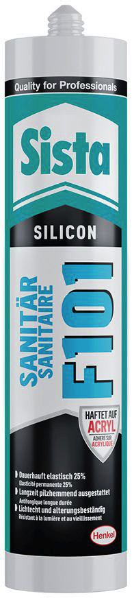für Fugen im Sanitär- und Nassbereich nach IVD-Merkblatt Nr. 3, besonders für Anschlussfugen an Fliesen, in Badewannen, in Duschen und an Duschwannen, Waschbecken, Spülen, Küchenmöbeln etc., sauervernetzend, exzellente Haftungseigenschaften, u. a. Acrylwannen-Haftung, pilzhemmend, abriebfest, dauerelastisch und wasserdicht, lichtecht und alterungsbeständig, Glanzgrad: glänzend, Bewegungsvermögen ca. 25 %, Hautbildungszeit ca. 15-20 Minuten bei 23 °C und 50 % rel. Luftfeuchtigkeit, Verarbeitungstemperatur +5 °C bis +40 °C, Temperaturbeständigkeit -40 °C bis +150 °C, Lagerfähigkeit: bei kühler (5-25 °C) und trockener Lagerung ist das Produkt im ungeöffneten Originalgebinde bis zu 12 Monate verarbeitbar