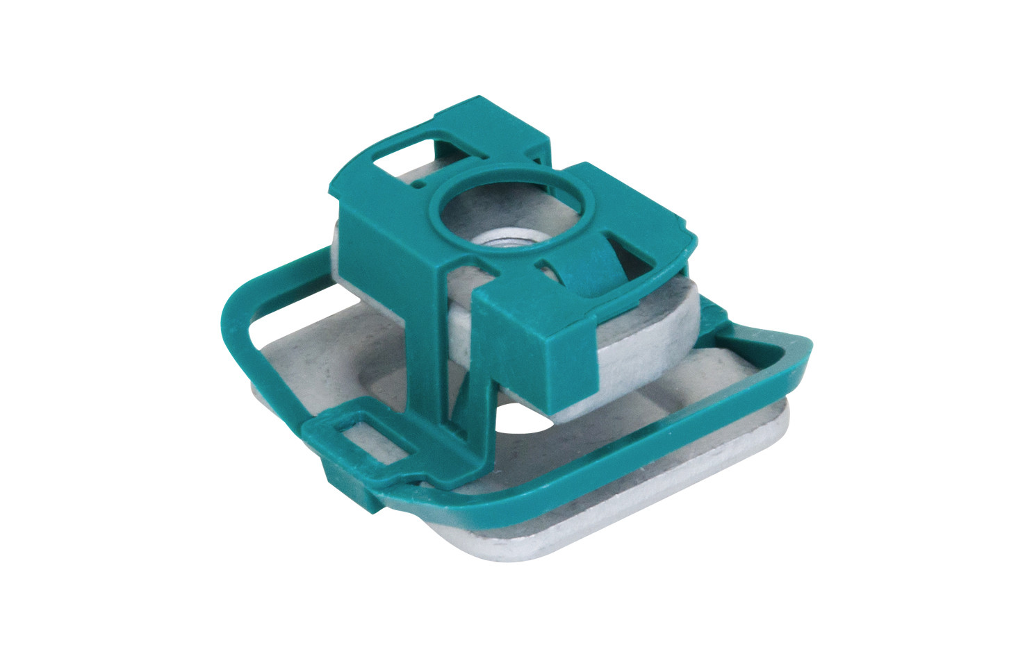 komplett vormontiert mit Kunststoffklemmfeder und U-Scheibe für eine schnelle, handfeste Montage, durch vormontierte Klemmfeder leicht einsetzbar und bis zur Enfixierung flexibel umpositionierbar, Oberflächenbeschichtung Ultra Protect 1000 Systemtechnologie, ein System für Installationen im Innen- und Außenbereich, besteht min. 1000 Std. Salzsprühtest nach DIN ISO 9227