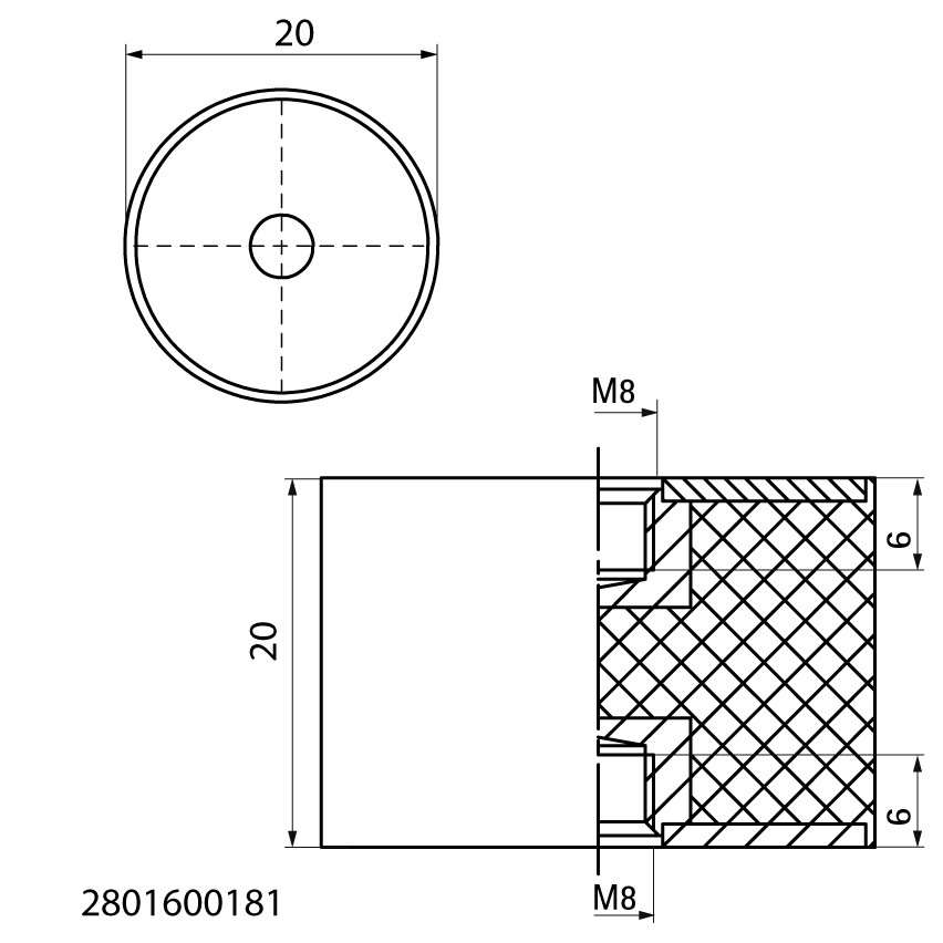 universeller Gummidämpfer, für den Einsatz bei elastischen Aufhängungen oder der Befestigung von Geräten, für den Einsatz bei Maschinen und Geräten, die auf metallischen Oberflächen montiert sind, nur für den Einsatz unter Kompression, in vier Varianten erhältlich: (1) SB-MM mit zwei Außengewinden, (2) SB-MF mit einem Außen- und einem Innengewinde, (3) SB-FF mit zwei Innengewinden, (4) SB-M mit einem Außengewinde und Gummifuß