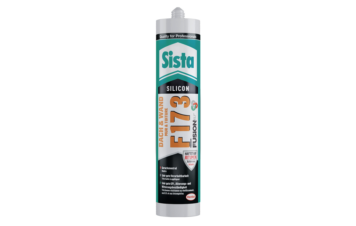 für Abdichtungen und Anschlussfugen im Außenbereich (u.a. von Kaminanschlüssen oder Durchbrüchen für Lichtkuppeln und Lüftungskanälen), dauerelastisch für die Abdichtung von Bauteil-, Bewegungs- und Anschlussfugen bei Dach-und Wandanwendungen, mit neuer FUSION XLT-Technologie, neutralvernetzend, geruchsneutral, UV-, alterungs- und witterungsbeständig, schnelle Hautbildungszeit ca. 15-20 Minuten bei 23 °C und 50 % rel. Luftfeuchtigkeit, zu glätten, bis -5 °C Kartuschen- und Lufttemperatur verarbeitbar, sehr gute Bitumenverträglichkeit, haftet ohne Primer u.a. auf Dachpappe, Mauerwerk, Glas, Emaille, Fliesen, glasierter Keramik, glatten Metallen, Hart-PVC, Polyester, Verarbeitungstemperatur -5 °C bis +40 °C, belastbar nach ca. 48 Stunden (Klimaabhängig), Temperaturbeständigkeit nach Aushärtung -50 °C bis +150 °C, Lagerfähigkeit bei kühler (+5 bis +25 °C) und trockener Lagerung ist das Produkt im ungeöffneten Originalgebinde bis zu 18 Monate verarbeitbar
