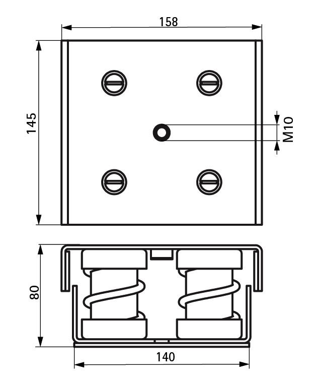 hochleistungsfähiger Stahlfederdämpfer für mittelschwere bis schwere Geräte, empfohlen für Geräte mit niedrigen Arbeitsgeschwindigkeiten ab 600 U/min und darüber, epoxidpulverbeschichtete Grundplatte, Kappen und Federn bieten erhöhten Korrosionsschutz, bewegliche, innere Füllmasse verhindert das Eindringen von Schmutz und festen Elementen sowie Beschädigungen der Feder unter Lasteinwirkung, Technical Data, Verhältnis Kx / Kz = Ky / Kz = 2,0, Gebrauchstemperatur: -90° C bis 150° C, Abkantungen in der Metallplatte sorgen für erhöhte Steifigkeit, Langlöcher erleichtern die Positionierung und Verankerung auf verschiedenen Untergründen