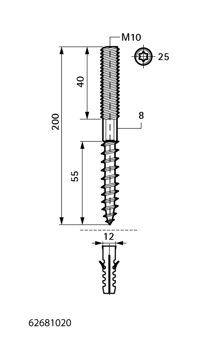 Walraven Stockschraube BUP1000 M 10 x 200 mm, Stahl
