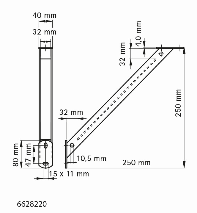 Walraven Stützbalken 250 mm, 45Grad, Stahl, elektrolytisch verzinkt