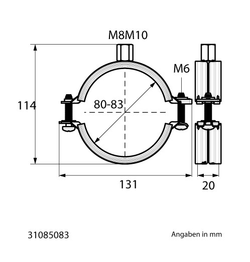 Walraven Zweischraubenschelle BIFIX G2 BUP1000 80-83 mm, M 8/10, EPDM, mit Einlage