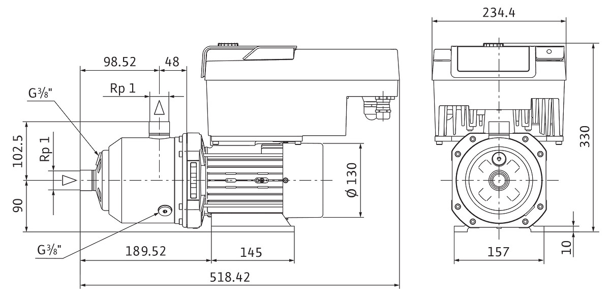 Wilo Hochdruck-Kreiselpumpe MEDANA CH3-LE.403-1/E/1/10T, Rp1 (PN 10), 0.75kW, 0.92kW